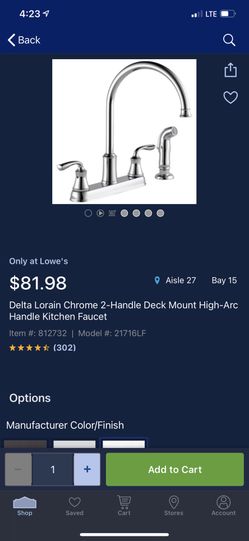 Delta lorain chrome 2 -handle deck mount high -Arc handle kitchen faucet$25Lebanon, TN