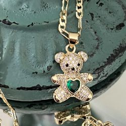 Bear Green Heart Pendant With Chain Necklace 18” 2mm Kids Size !!!$20Nashville, TN
