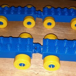 LEGO Duplo Train Car Base Lot Of (4) 2x6 Hitch Open End Bright Blue, With Yellow Wheels$10Nashville, TN