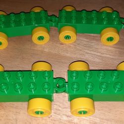 LEGO Duplo Train Car Base Lot Of (4) 2x6 Hitch Open End Green, With Yellow Wheels$10Nashville, TN