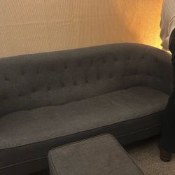 Curved Back Gray Upholstered Couch With Small Storage Ottoman$50Nashville, TN
