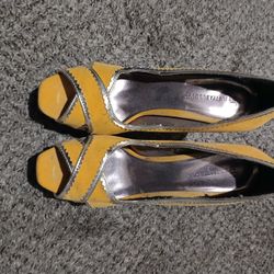 Size 10 Peep Toe Yellow And Silver Heels $25Smyrna, TN