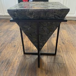 Teak Wood Handmade Inverted Pyramid Geometric Accent Table With Black Metal Base And Mosaic Pattern$135Smyrna, TN