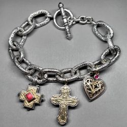 Woman's KONSTANTINO Sterling & 18K Gold Toggle Bracelet W/ 3 Charms 7.5"$750Goodlettsvlle, TN