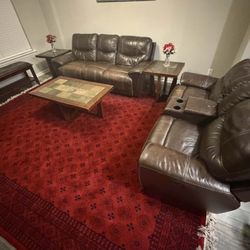 Moving Sale! 93” Inch Leather Sofa. Leather Recliner With Charge Port. Extendable Wooden Table, 4 Chairs$550Nashville, TN