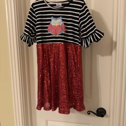 596-Girls' Short Sleeve Owl Red Sequin Black & White Striped XXXL Short Dress$12Gallatin, TN