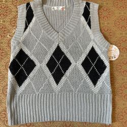 136-MMT FCT Women Argyle Grey & Black Sweater Vest Size Small New With Tags$13Gallatin, TN
