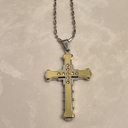 Men's Silver and Gold CZ Cross Necklace $20Abilene, TX