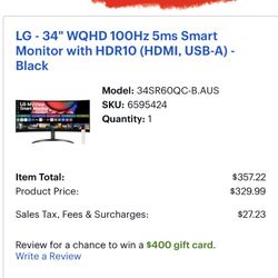 LG 34” Smart Monitor LIKE NEW$280Desoto, TX