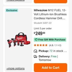 Milwaukee M12 Fuel Set Drill And Impact Driver With Charger And Batteries$209Arlington, TX