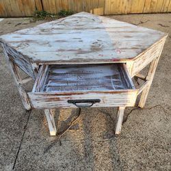 Rustic Weathered Corner Table with Drawer$100Arlington, TX
