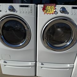 LG Washer and Dryer Set with Pedestals $699Dallas, TX