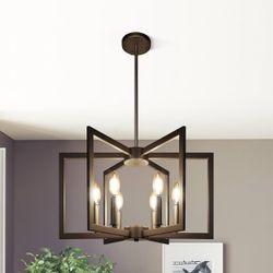 6-Light Modern Farmhouse Black Chandeliers for Entryway, Geometric Pendant $45Garland, TX