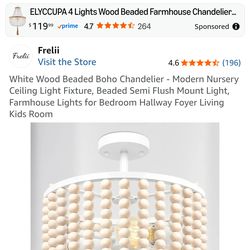 White Wood Beaded Boho Chandelier - Modern Ceiling Light Fixture, Beaded Semi Flush Mount (AM49)$40Flower Mound, TX