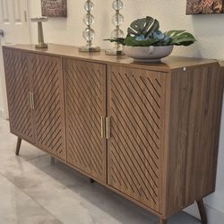 NORDIC STYLE SIDEBOARD OR BUFFET NEW CONDITION 63X16X35 REFULABLE SHELVES WALNUT COLOR$250Hickory Creek, TX