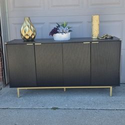 BEAUTIFUL BLACK SIDEBOARD OR BUFFET ALREADY ASSEMBLED METAL GOLD LEGS 58X17X33 GREAT FLUTED SHAPE $240Hickory Creek, TX