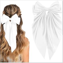 NEW Hair Bow for Girls,Cute Bow Hair Clips for Women Oversized Satin Hair clips Long Ribbon Hair Accessories Gifts for Girl (Pure white)$5Forney, TX