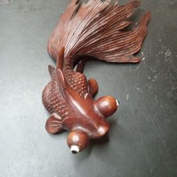EXQUISITE Carved Chinese Rosewood Bubble-eye or Fantail Goldfish 10" Sculpture