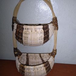 Vintage rustic, two-tiered woven basket with a branch handle$10Arlington, TX