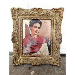 Frida Kahlo Portrait Mixed Media Small Art Work on Canvas Gold Framed Distressed$65Lucas, TX