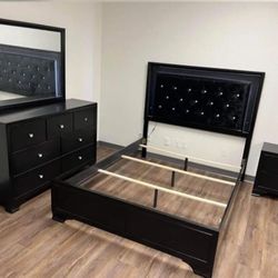 Pepe Black/Gold Panel Upholstered Bedroom Set/ Dresser, Mirror, NightStand, Bed// Mattress Sold Separately $760Dallas, TX