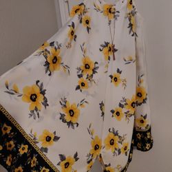 Ladies v neck yellow floral print dress, sz L, $12 like New very light weight & flowing.