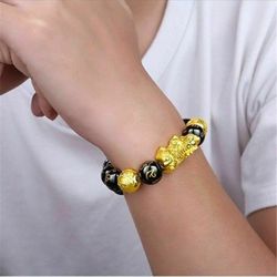 Feng Shui Pixiu Obsidian Stone Beads Bracelet Wealth And Good Luck Jewelry US$18Irving, TX