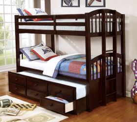 Menlo Espresso Twin Over Twin Bunk Bed with Storage Drawers and Twin Trundle$549Mansfield, TX