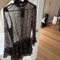 NWT zara black floral mini dress with bell sleeves and ruffles Size XS$20Dallas, TX