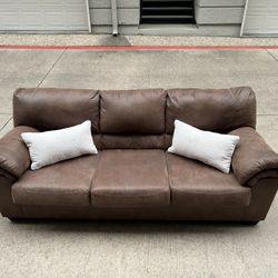 Brown Leather 3-Seat Sofa – Rolled Arms, Plush Cushions, Excellent Condition!$325Dallas, TX