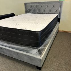 NEW QUEEN SIZE GREY VELVET BED WITH MATTRESS AND BOXSPRING INCLUDING FREE DELIVERY ALSO AVAILABLE IN KING SIZE$339Arlington, TX
