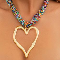 Heart Shape Alloy Beaded Pendant Necklace $20Richardson, TX