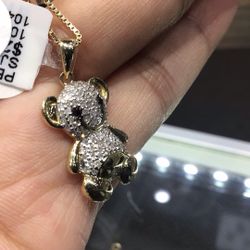 10k Gold Diamond Pendant Teddy Bear With Box Chain 18” Inch Together Deal Both,available In Stock.💎💎💎💎$499Dallas, TX