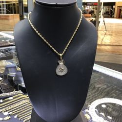 10k Gold Solid Rope Chain And Real Diamond Pendant Combo Deal For A Good Price!!$5,000Plano, TX