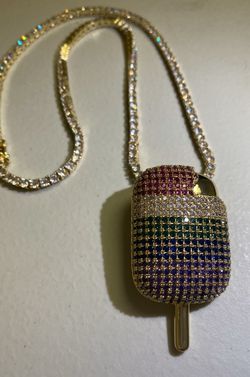 Iced out popsicle pendant with tennis chain$85Richardson, TX