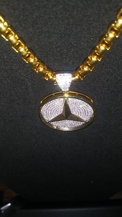 14k 24" Gold Plated Link Chain & Mercedes Benz pendant$195Lewisville, TX