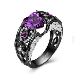 Women’s Size 7 Amethyst Heart Black Sterling Silver Vancaro Ring$50Forney, TX