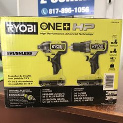 Ryobi 18 V One Plus Brushless Cordless 1/2in drill Driver And Impact Driver Kit With 2 Batteries Charger & Bag $160Arlington, TX