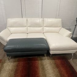 White Leather Sectional And Ottoman $800Dallas, TX