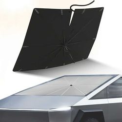 Soruci Windshield Sun Shade Umbrella for Tesla Cybertruck 2024 2025 Truck Accessories, Titanium Silver Coating for UV Ray Block Foldable Car Front Win$30Red Oak, TX
