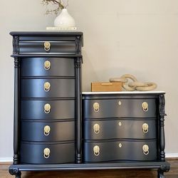 Marble Top Dresser — Solid Wood, Refurbished, 9 Drawer, Black Finish$600Dallas, TX