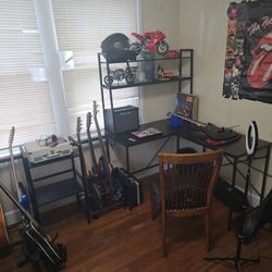Wood And Glass Desk With Shelves And Office Chair $250Amarillo, TX