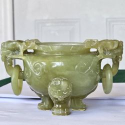 Decorative Chinese Carved Dragon Tripod, Green Jade Censer, Top Missing!$165Amarillo, TX