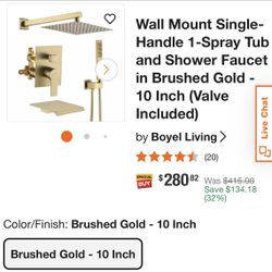Wall Mount Single-Handle 1-Spray Tub and Shower Faucet in Brushed Gold - 10 Inch (Valve Included)$150Grand Prairie, TX
