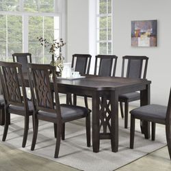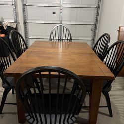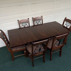 7-PC HEAVY DUTY SOLID WOOD DINING SET (TABLE WITH EXTENSION LEAF AND 6 WOOD WITH IRON PADDED CHAIRS)$280Dallas, TX