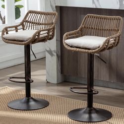 Adjustable Rattan Bar Stools Set of 2 with Cushion, Boho Bar Stools with Footrest, Wicker Barstools Counter Height with Backs, High Chair for Kitchen $100Grand Prairie, TX
