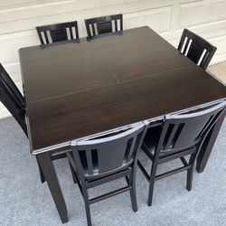7-PC SOLID WOOD BLACK FINISHED HIGH TOP DINING SET (TABLE WITH EXTENSION LEAF AND 6 PADDED CHAIRS)$340Dallas, TX