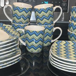 American Atelier 25 Piece Dinnerware Set Square Plates Green & Blue Chevron Design$20Fort Worth, TX