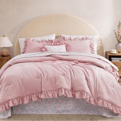 Queen Comforter Set - 7 Pieces Ruffle Soft Pink Bedding Sets, Shabby Chic Farmhouse Bed in a Bag Queen with Ruffle Comforter, Floral Sheets, Pillowcas$60Fort Worth, TX