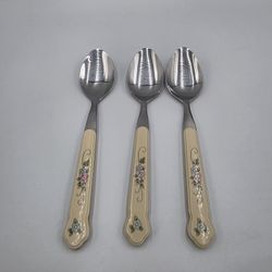 3 Pfaltzgraff Tea Rose Plastic Stainless Pink Blue Floral Soup Spoons Taiwan 8"$18Dfw Airport, TX